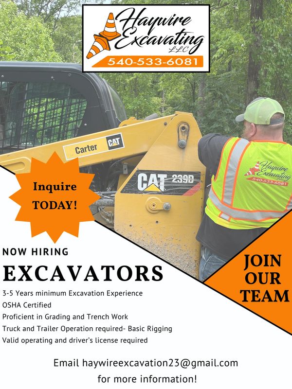For more information, call 540-533-6081 or email haywireexcavation23@gmail.com